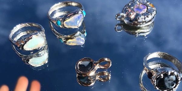 Each piece is made from sustainable sterling silver Australian opals and ethically sourced, lab-grown gemstones.